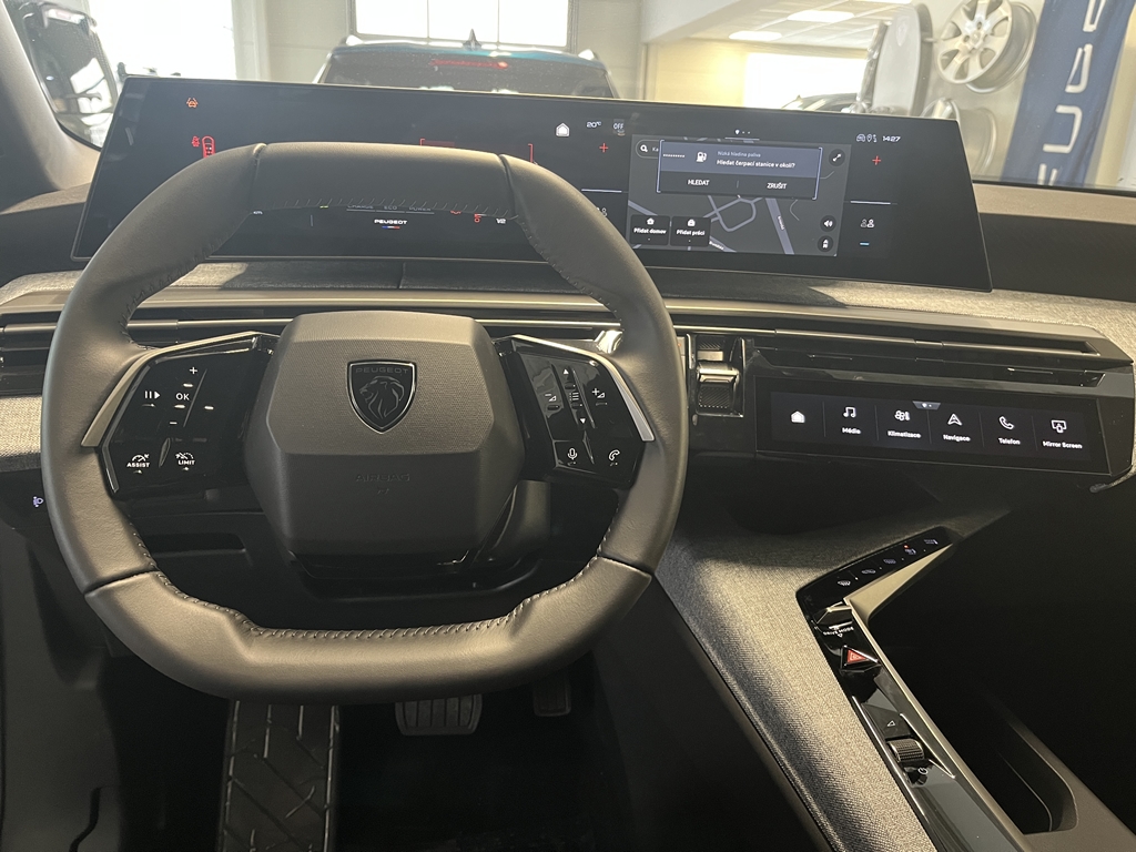- PEUGEOT Panoramic iCockpit® Display 21″: Zakřivený levitující digitální displej 21″ HD (540 mm)